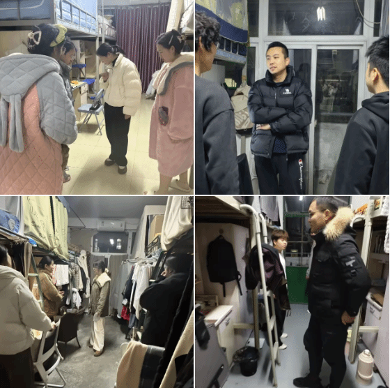 在宿舍卫生方面,多数宿舍整洁、物品摆放有序,但个别宿舍有垃圾未清、衣物乱堆问题,辅导员当场督促整改,提醒注重日常卫生。用电安全是检查关键,辅导员查看是否私拉电线、违规用大功率电器,并现场进行安全教育,强调违规用电后果,提醒安全用电、增强安全意识。