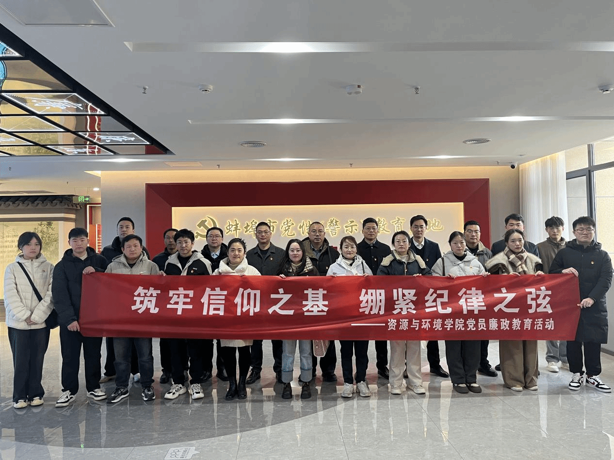 为深化党纪学习教育,筑牢拒腐防变思想防线,12月12日上午,资源与环境学院党政领导班子、教工党员及学生党员前往蚌埠市委党校党性(警示)教育基地开展警示教育活动。