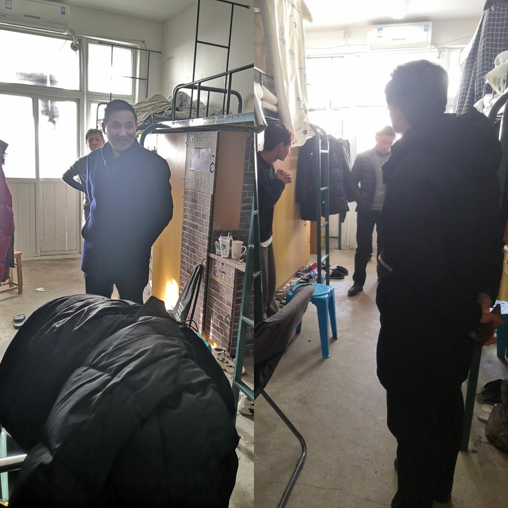 李孟良、沈树舟和吴国良前往男生宿舍查看。他们仔细检查了学生宿舍的安全卫生情况,叮嘱学生们要提高安全防范意识,保证寝室卫生整洁。此外,他们询问学生们生活是否还适应,并叮嘱同学们临近期末考试不要睡懒觉,要抓紧时间好好复习。面对旷课的同学,也予以了批评和教育。