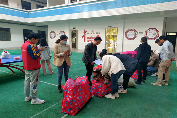 镇政府相关负责人对资环学院青协的到来表示热烈的欢迎,同时对我院青协的爱心行为表示高度的赞赏,资环学院青协会长锺胜悦作为代表发言。在捐赠环节,各村代表从大学生志愿者手中接过干净整洁的军训服,他们的脸上露出了朴实的笑容,台下也响起了热烈的掌声。在大学生志愿者与镇政府相关负责人以及各村代表合影留念后,各村代表表示感谢,并将分发到的军训服带回各自的村里。据悉,回收的所有军训服全部用于捐赠给府城镇各村的一些贫困人员。
