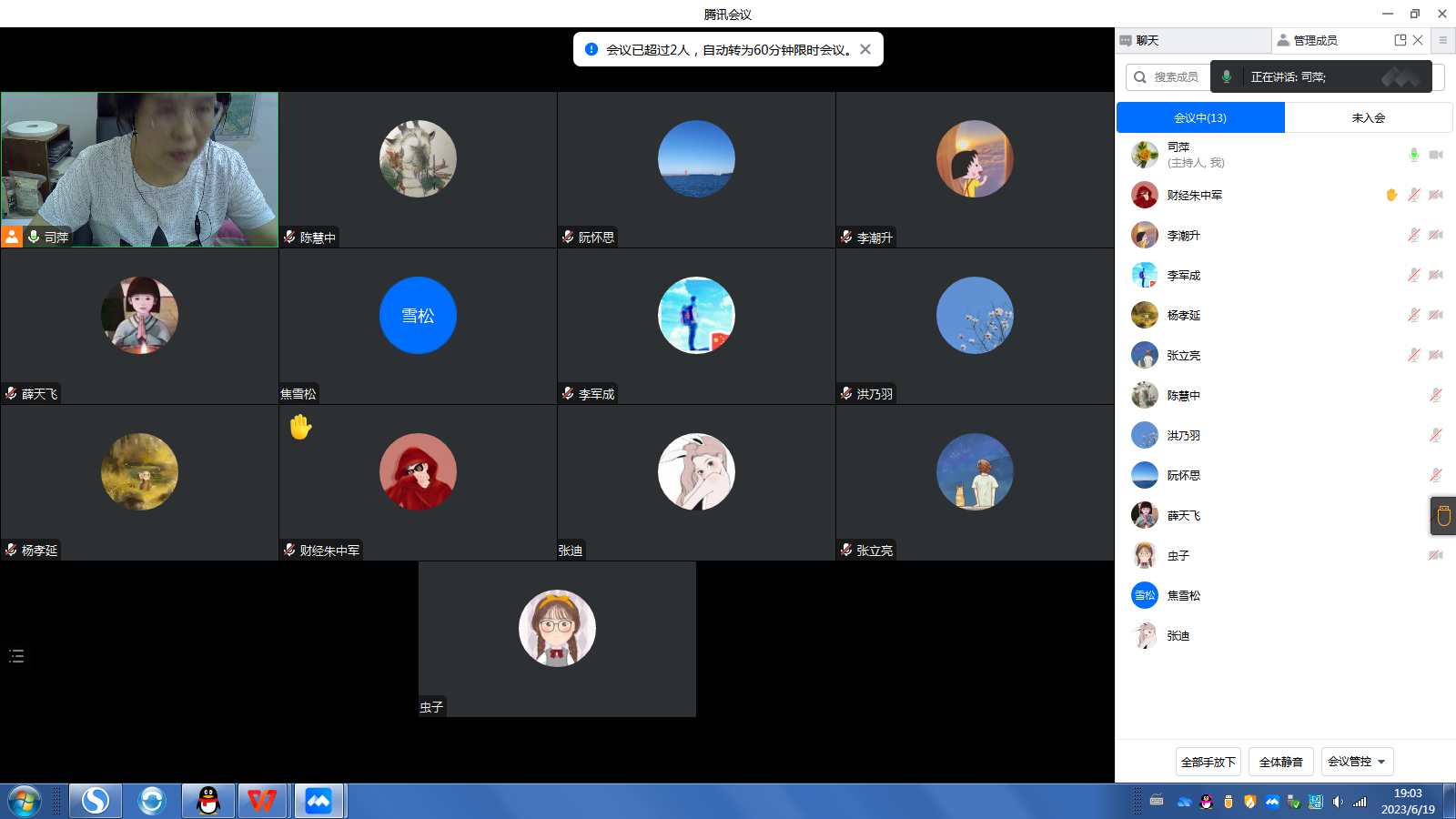 为做好2023届毕业生文明离校工作,6月19日,学校招生与就业工作处组织召开2023届毕业生就业工作培训会,会议通过腾讯会议方式进行。校本部14个二级学院、南京信息工程大学金牛湖园区、滁州职业技术学院的就业工作联系人参加会议。会议由招生与就业工作处就业指导中心主任司萍主持。