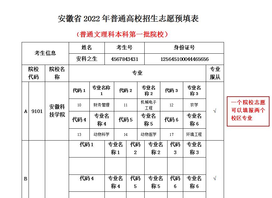 我校2022年安徽省普通高校招生,招生代码为9101。有三个录取批次,分别是提前批次、本一批次、本二批次。为方便广大考生填报,现将安徽省志愿填报注意事项说明如下。安徽省外考生请关注各省份教育考试官方机构提供的志愿报考指南参考。