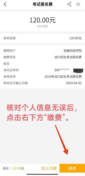 安徽科技学院中国足彩网2024年对口招生考试报名费缴纳工作通知