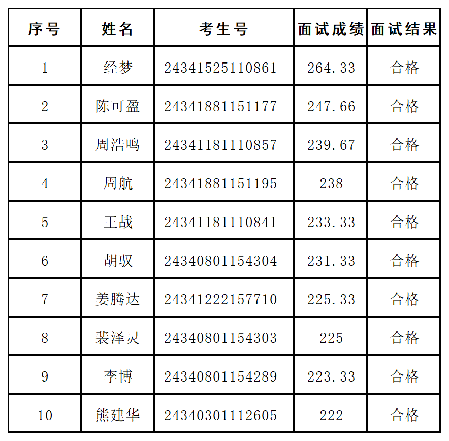 经本人申请、资格初审、资格复审和专家组面试,现将经梦等10名考生面试结果予以公示。
