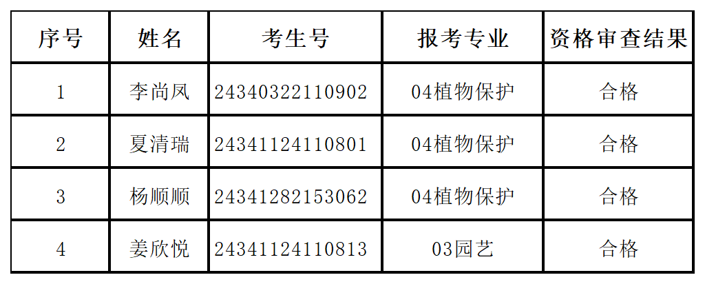 经本人申请、资格初审和资格复审,现将李尚凤等4名考生资格复审结果予以公示。