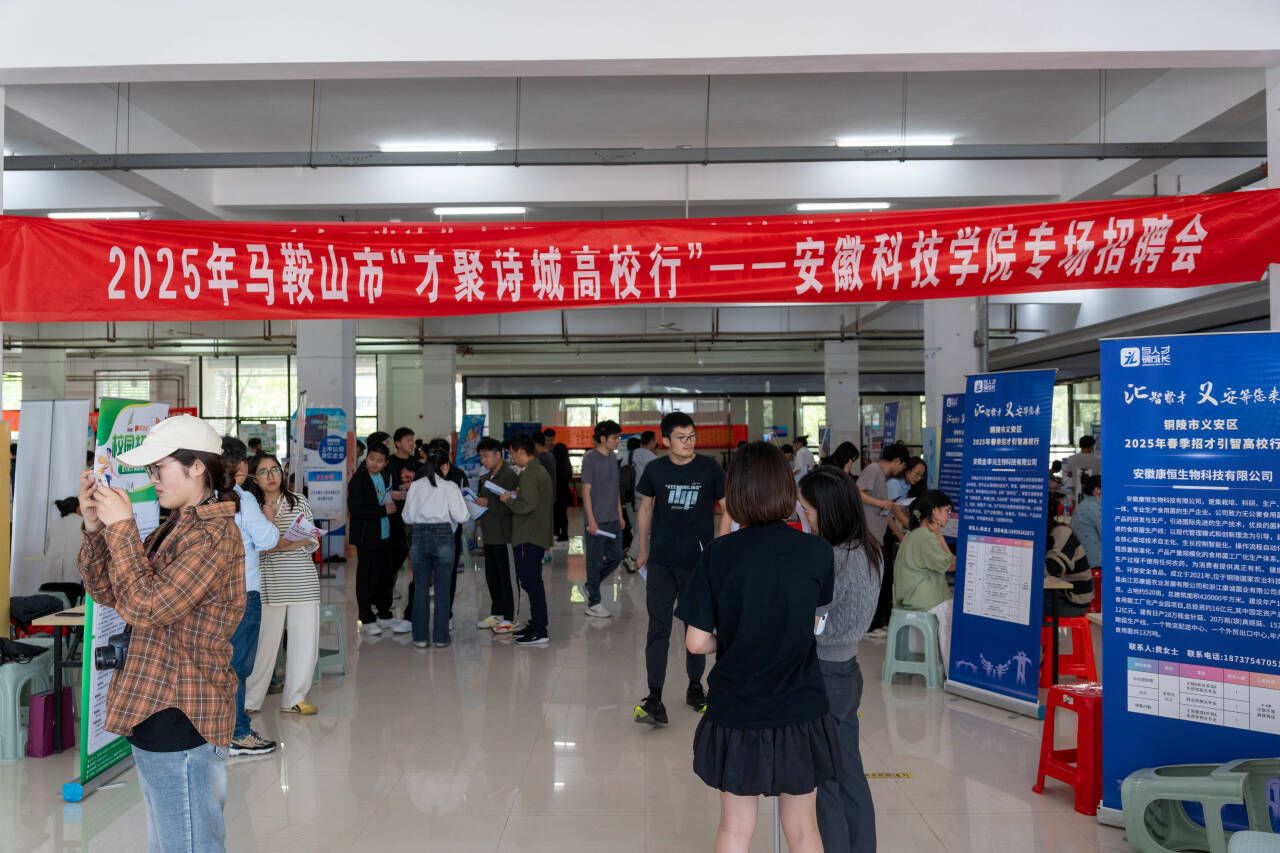 4月22日下午,马鞍山市“才聚诗城高校行”安徽科技学院专场招聘会在龙湖校区招聘大厅举办。