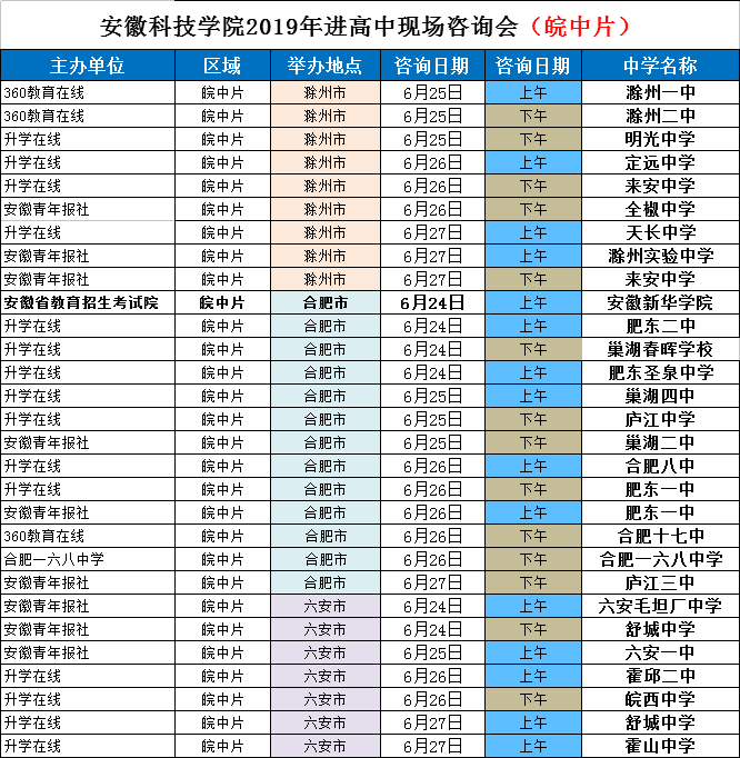 安徽科技学院中国足彩网:进高中现场咨询会安排表