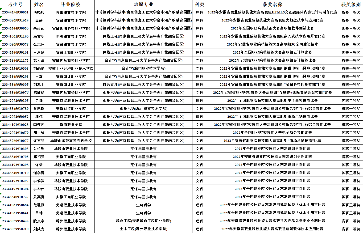 安徽科技学院中国足彩网公布2023年普通专升本招生申请技能大赛免试政策考生信息的通知