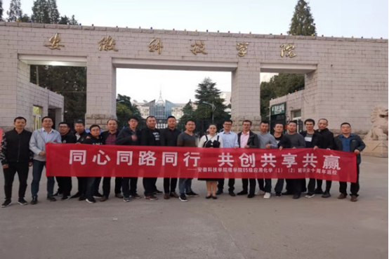 王明清代表学院对各位校友毕业后十年重返母校、重温大学时光表示热烈欢迎。他向校友们简单介绍了安徽科技学院近年来的建设和发展情况,感谢校友们对安徽科技学院和化学与材料工程学院的关注与支持,希望广大校友们一如既往地关心学校与学院发展,积极参与母校和母院建设。