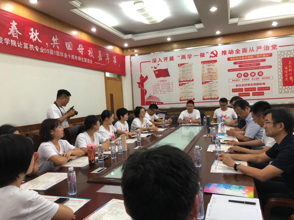10月4日下午,信息与网络工程学院计算机科学与技术专业2009届毕业生毕业十周年回到母校,追忆似水年华,重温青葱岁月。信息与网络工程学院院长刘德义、党总支书记王振其、外国语学院院长陈德用、信息与网络工程学院教师刘斌、黄勇、陈凯等参加了座谈会。