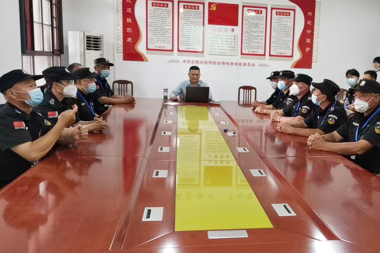 6月14日下午,保卫处邀请中天保安集团公司副总钱传运来我校对凤阳校区保安开展业务培训及防暴恐演练。
