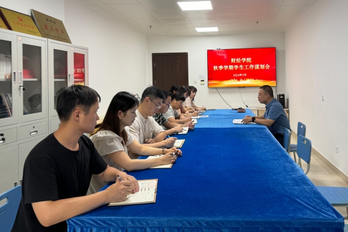 9月2日上午,财经学院在西辅楼212会议室召开秋季学期学生工作谋划会。学院党委副书记、纪委书记耿广汉主持会议,全体辅导员参加会议。