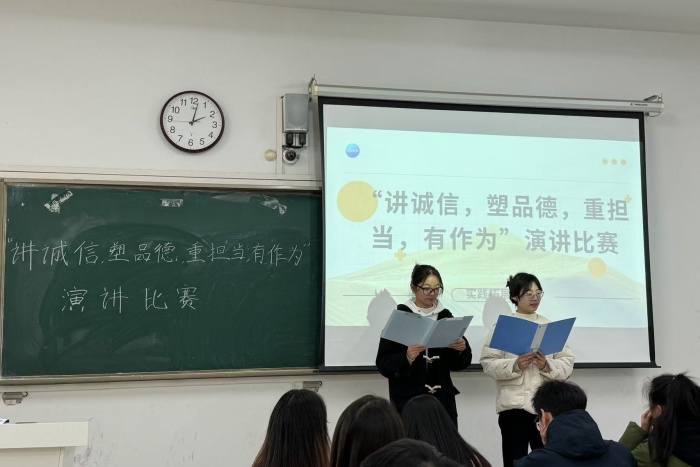 为进一步加强诚信文明建设,传承中华民族传统美德,12月11日下午,财经学院学生会实践拓展部在致知楼c205教室举办了“诚信文明”主题演讲比赛。