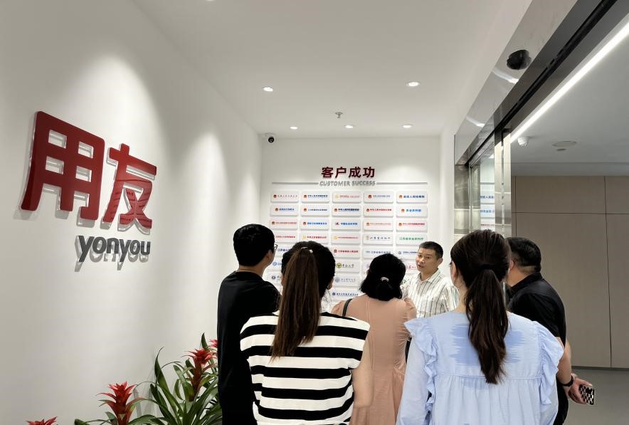 调研期间,全体教师首先参观用友软件园,了解用友集团与行业合作的模式和产品架构,技术负责人简要介绍了公司发展情况,客户合作伙伴及数智化新商科人才培养的发展新态势,分享了公司的前沿教学软件技术。