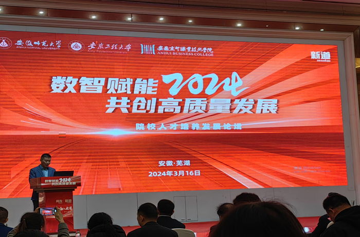 为进一步推动学科专业建设,促进商科专业数智化转型,3月16日,财经学院会计学教研室主任张淑英和财务管理教研室主任钟德仁两位老师参加了在芜湖举办的“数智赋能,2024共创高质量发展院校人才培养发展论坛”。此次会议由安徽师范大学和安徽工程大学主办、安徽科技学院联合主办,新道科技有限公司承办。会议邀请安徽师范大学副校长熊宇杰、安徽工程大学副校长周虹屏、安徽商贸职业技术学院党委副书记王炜等以及新道科技的行业专家进行专题的分享。