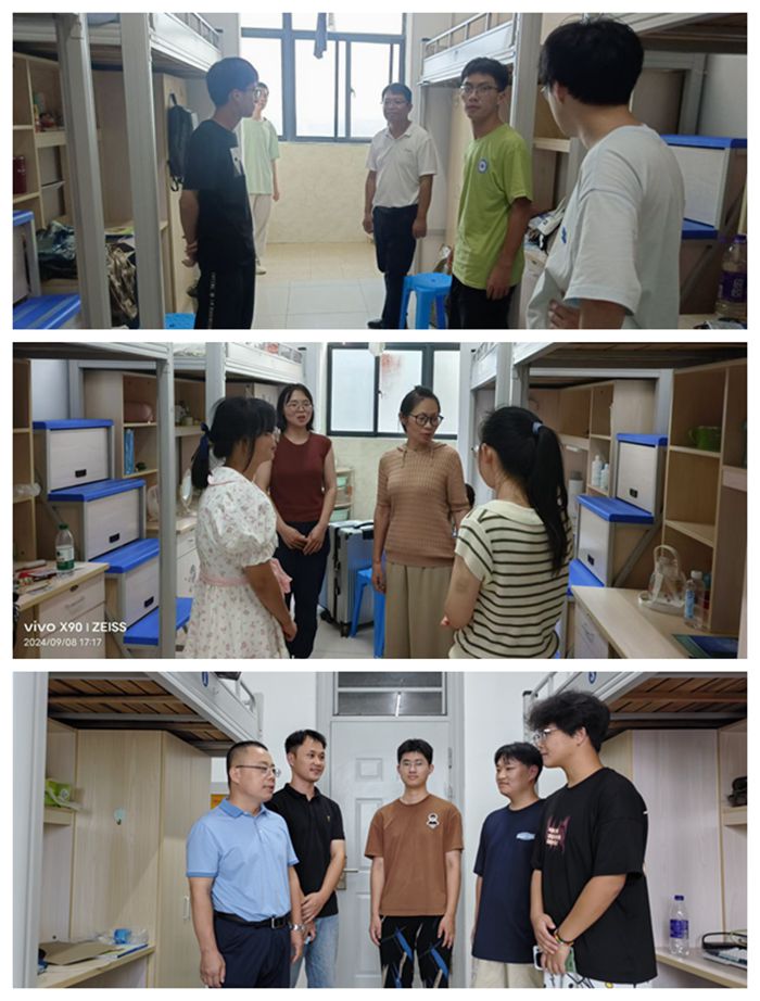 走访过程中,学院领导与同学们亲切交流,询问同学们对宿舍环境和大学新生活的适应情况、耐心答疑解惑、分享学习生活方面的建议,叮嘱同学们珍惜大学时光,时刻绷紧安全之弦,生活上团结互助、学习上共同进步、积极参与活动各类校园文化活动和实践活动,尽快适应大学学习生活环境,确立奋斗目标、不断提升自己的综合素质与能力。