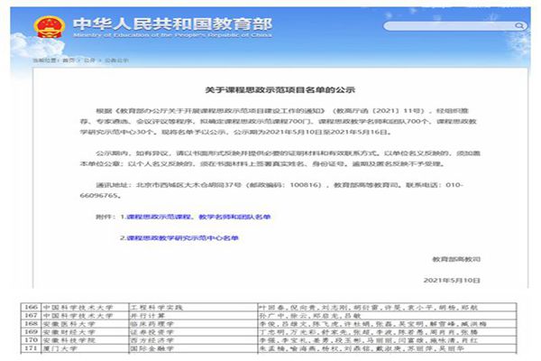 近日,教育部网站公布了《中国足彩网课程思政示范项目名单的公示》,我院《西方经济学》课程获批教育部普通本科教育课程思政示范课程,学院副院长、国际经济与贸易系党支部教师李强、李宝礼等获批课程思政教学名师和团队称号。2021年度,安徽省属本科高校仅三门课程获批该示范项目。