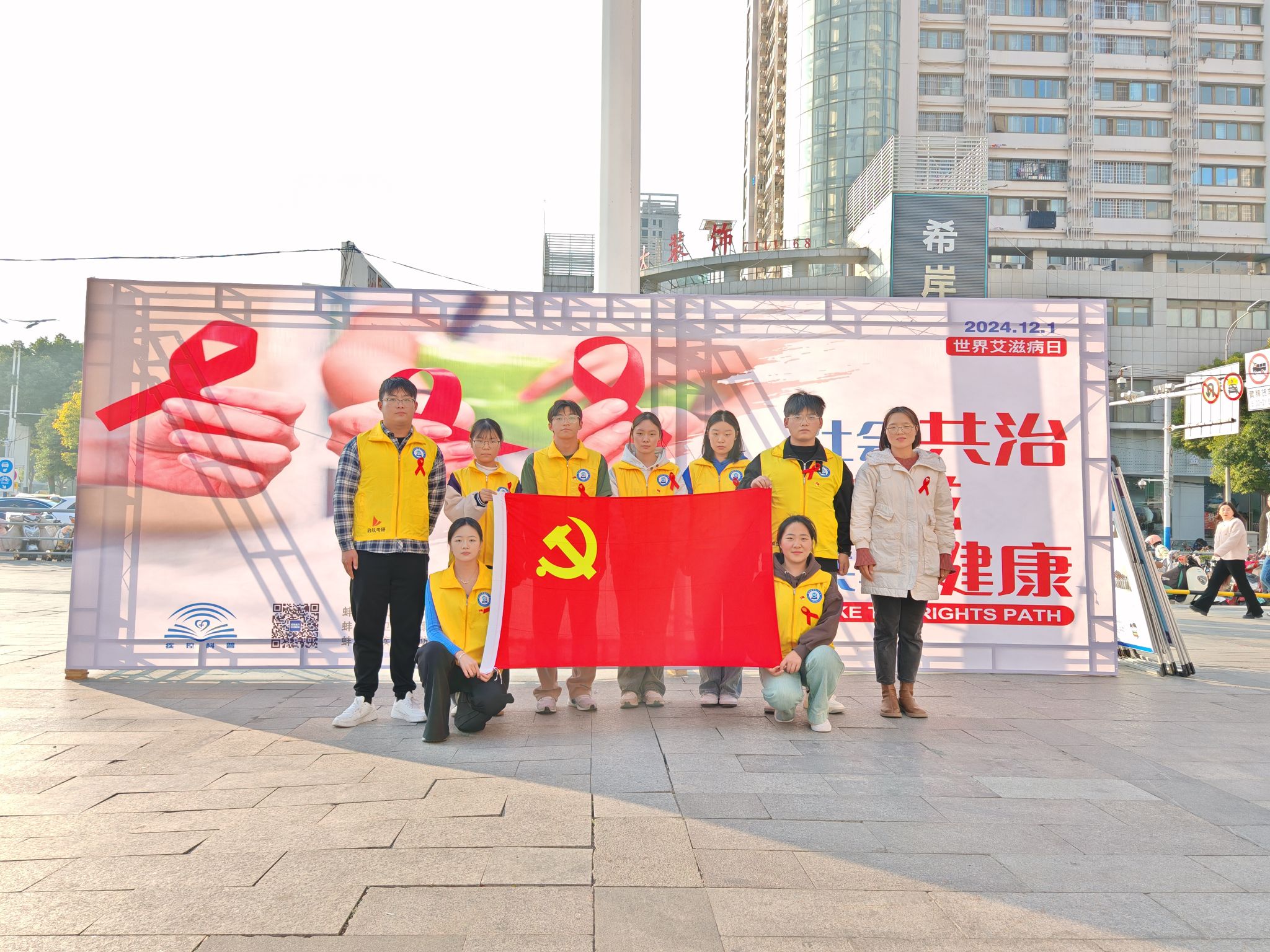 今年的12月1日是第37个“世界艾滋病日”,财经学院组织党员志愿者团队,积极参加在蚌埠万达广场举办的“社会共治、终结艾滋、共建健康”集中宣传活动。