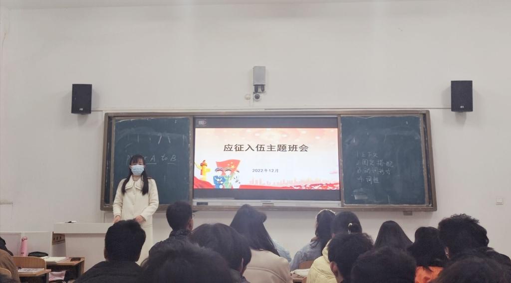 为鼓励大学生积极参加2023年春季应征入伍,更好了解春季征兵工作政策及流程,财经学院全体班级于12月初召开大学生应征入伍宣传教育主题班会。