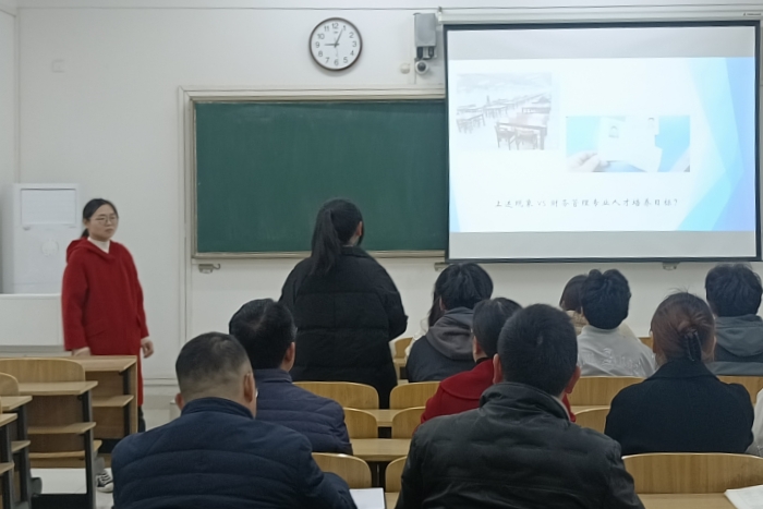 为深入学习贯彻党的二十大精神,加强大学生思想政治教育,引导学生厚植爱国情怀,涵养进取品格,激励学生启航新征程,怀揣新希望,阔步新时代,3月17日,财经学院开展主题班会观摩活动。财经学院党委书记杜小明,党委副书记、纪委书记耿广汉,建筑学院党委副书记、纪委书记谢宜勤,两院全体辅导员老师出席班会并观摩。主题班会主讲人为财经学院辅导员王天云。
