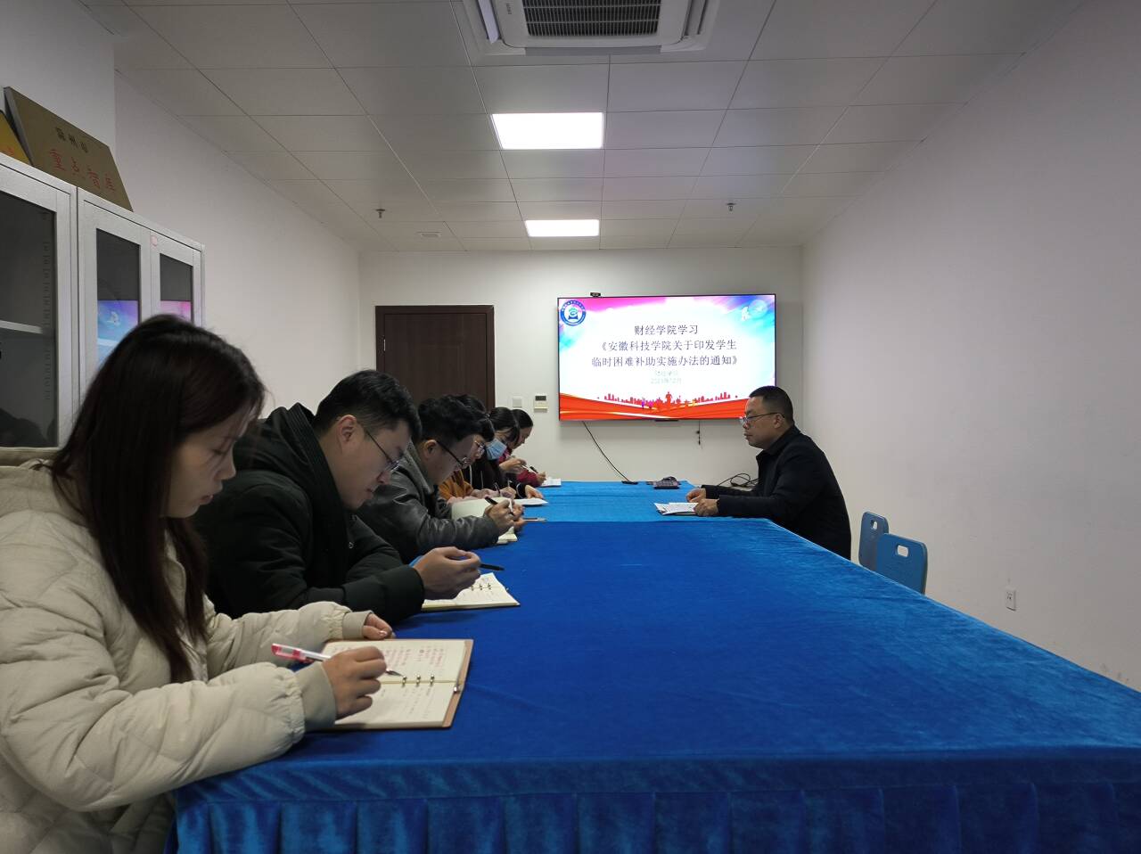 财经学院组织辅导员学习《安徽科技学院中国足彩网印发学生临时困难补助实施办法的通知》