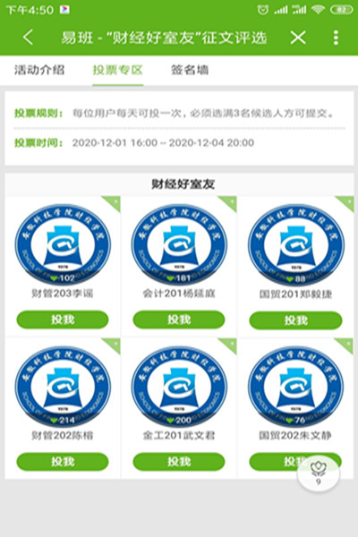 征文活动主要由教师评选以及征文展示两个环节组成。教师评选环节,先由财经学院学习部以及院自律委员会筛选出入围征文,再由教师评选出具体奖项;征文展示环节,2020各级新生通过自己独特的文笔向我们展示了每个宿舍良好的学习及生活氛围。通过激烈的角逐,最终财管202陈榕同学、金工201武文君同学等学生荣获学院“财经好室友”荣誉称号。