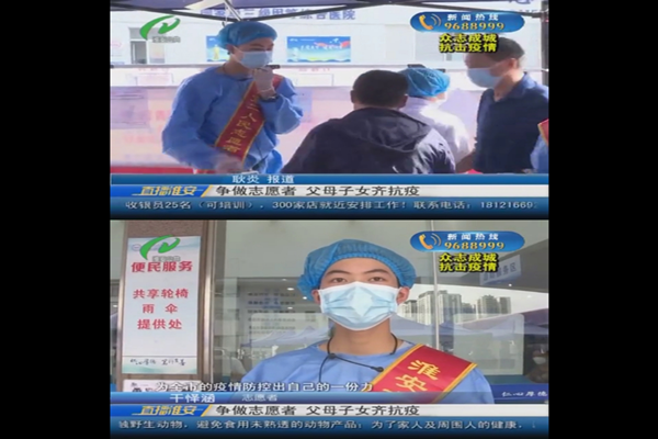 因在抗疫一线志愿服务期间的优异表现,淮安电视台和淮海晚报对干怿涵等志愿者进行了采访。干怿涵说道:“每天回家后动也不想动,只想安静地躺会儿,但是想到能为社会做点事情,能够帮助到那么多人,我感觉很有意义”。在他看来,作为安徽科技学院的一名入党积极分子,在国家和社会需要的时候,应该不畏困难,毅然决然的挺身而出。