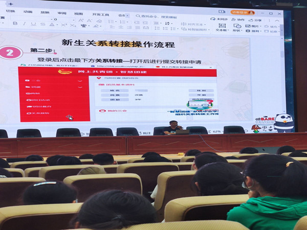 院团委学生委员蔡薇薇对《第二课堂成绩单(社会责任学分认定)实施细则(试行)》文件精神对二课成绩单的认定范围、认定标准等方面进行详细解读,就 “第二课堂”管理及学分认定等内容在平台网页端、手机客户端的操作流程进行了演示,现场模拟从活动发起到签到签退、上传新闻稿件等全过程。