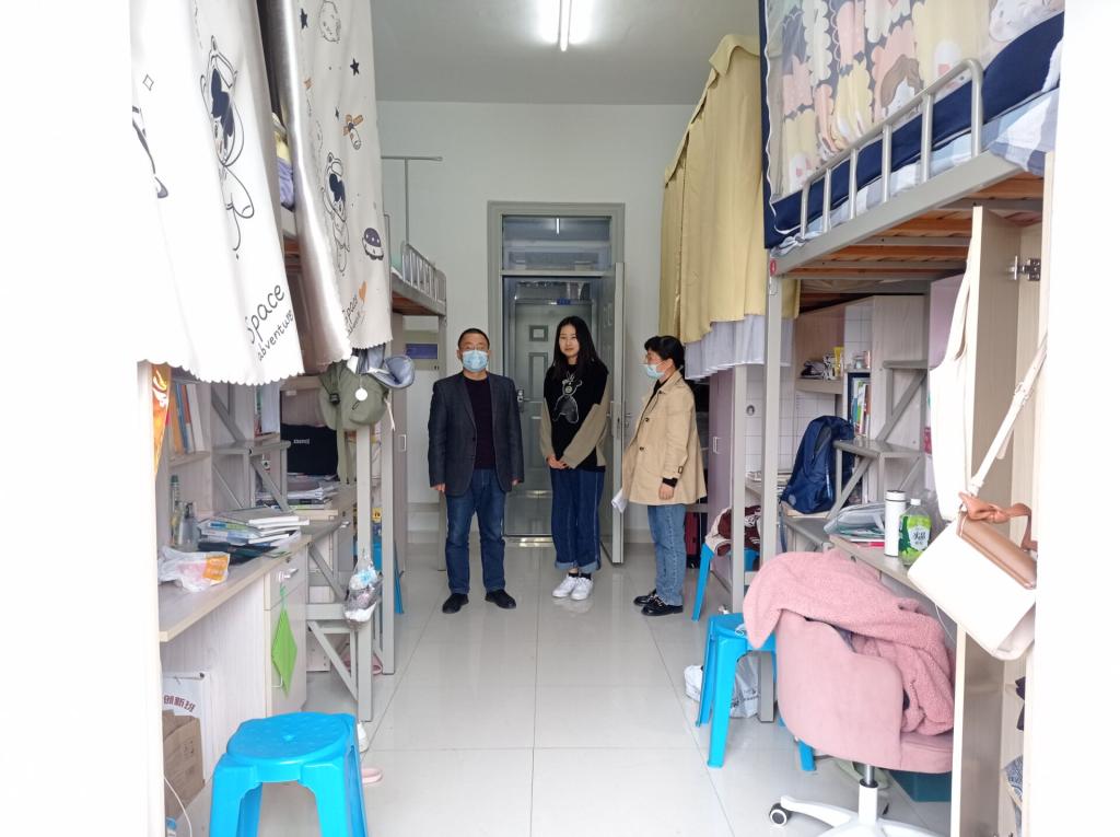 走访过程中,老师与同学们亲切交谈,宣讲学校疫情防控最新动态和最新要求,提醒同学们在疫情防控常态化的背景下保持宿舍干净卫生,做好个人卫生,强化安全防护的重要性。走访中,老师还解读了寝室违规用电、私拉电线等反面案例,强调学生宿舍内的“六个严禁”,引导学生们深刻认识违反宿舍安全管理规定的严重后果,树立遵纪守法自觉性。