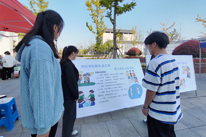 为进一步普及心理健康知识,强化学生关注心理健康、提高心理素质的意识,促进学生身心健康发展,财经学院于10月15日在知味园小广场以展板形式宣传心理健康知识。知识内容丰富,既包含健康心理的培育方法,也包括心理困扰的自助及求助途径。宣传活动传播了心理健康知识,有助于提高同学们的心理保健能力。