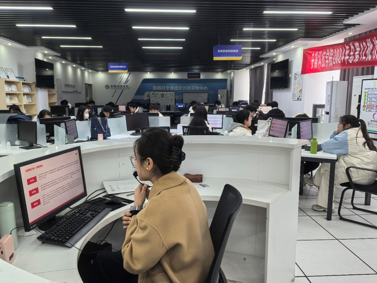 12月3日,为提升财务管理专业学生数智化素养和基于大数据的财务分析技能,安徽科技学院数智财务现代产业学院校企合作单位新道科技股份有限公司中级工程师谈成燕在敏行楼C409为财务管理专业学生讲授《大数据财务分析与决策》实训课程。授课平台为新道科技股份有限公司基于企业实践案例和用友网络科技股份有限公司的财务平台开发的“新道云”,授课内容包括大数据工具应用、基础财务报表分析、经营者角度分析和投资者角度分析四个模块。