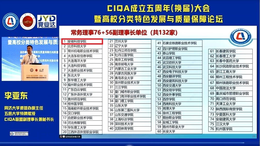 7月26-27日,“CIQA 成立五周年(换届)大会暨高校分类特色发展与质量保障论坛”在江门顺利召开。本次大会由全国高校质量保障机构联盟(CIQA)主办,五邑大学承办,全国高校质量保障机构联盟(CIQA)公布第二届联盟成员及其组织结构,我校成功当选为常务理事单位!