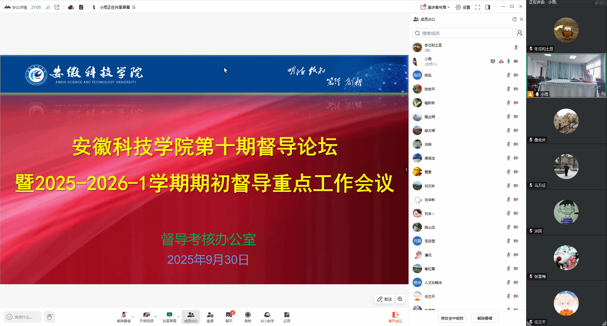 9月30日下午,学校召开第十期督导论坛暨新学期期初教学督导重点工作会议。全体校教学督导、院督导、督导考核办公室工作人员参加了会议,会议由督导考核办公室马万征主持。