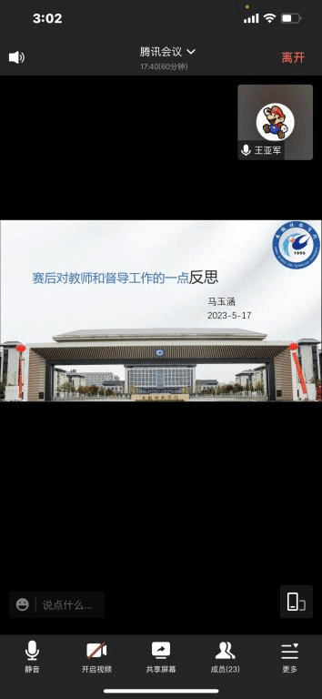 根据会议安排,校教学督导员马玉涵老师通过对教师发展阶段及教师角色、人才培养、“能言善辩”等概念的多维度剖析,分享了其参加第三届全国高校教师教学创新大赛的宝贵经验;电气与电子工程学院教学督导组组长张平娟老师从教风和学风两个方面介绍了学院督导工作的特色做法。