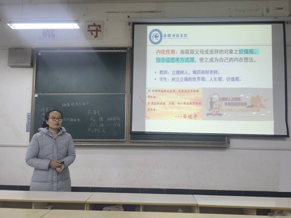 示范课教师郭伟娜讲解了细菌的感染与致病机理内容,通过细菌的内化作用结合课程思政,指出教师要立德树人,做四有好老师;学生要树立正确的世界观、人生观、价值观;王淑娟介绍了羊的生物学特性,阐述羊适应性强、勇敢顽强易训练、抗病能力强等生物学特性,教育学生要积极向上,不怕困难,勇于担当。两位教师讲解的课程生动形象,易于理解,并且较好的把思政教学内容有机融入专业课程,使学生更加关注时代、关注社会,汲取养分、丰富思想。