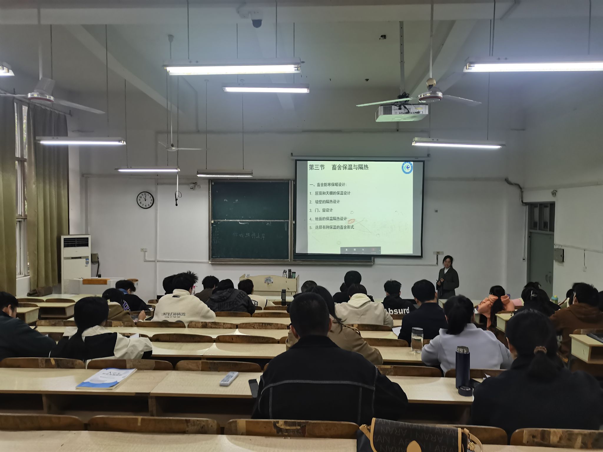 季珂老师主要围绕《畜舍保温与隔热》,从屋顶与天棚的保温设计、墙壁的隔热设计、门窗设计、地面的保温隔热设计、选择有利保温的畜舍形式等方面展开深入浅出的讲解。季珂老师理论功底扎实,教学准备充分,教学内容熟悉,讲解熟练,普通话标准流利,注重采用启发式教学,适时与学生的互动交流,取得了一定的教学效果。