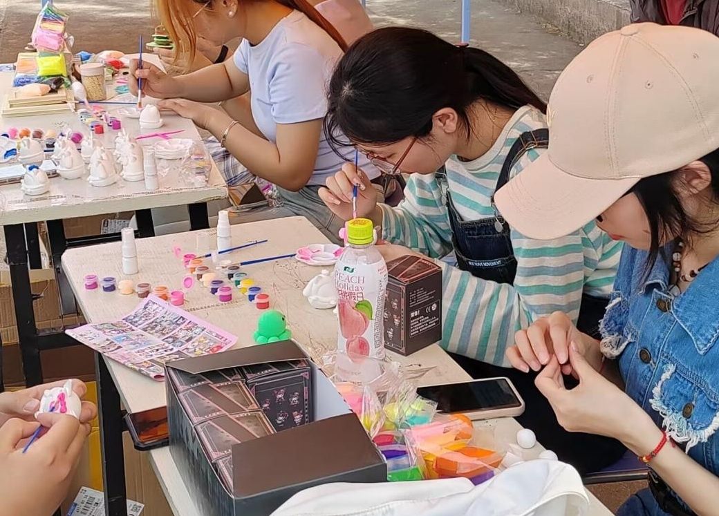 活动现场气氛热烈,欢乐不断。在“孤注一‘掷’,‘投’向未来”环节中,同学们积极参与投掷沙包游戏,为了争取精美的盲盒奖品而努力,欢笑声此起彼伏;在“玩转黏土,乐趣多多”活动中,同学们全神贯注地进行黏土制作,专注耐心地对自己的作品进行“精雕细琢”,在制作过程中既放松了心情又缓解了压力,同时也增进了彼此的友谊;在“相遇石膏,邂逅童真”活动中,同学们沉浸在石膏娃娃制作中,发挥创意打造出独一无二的作品,现场充满欢声笑语,同学们用色彩表现内心对美的理解,收获了满满的快乐;在“告白风车DIY”活动中,同学们精心制作着属于自己的风车,在绘画中感受宁静,释放压力,放松心情,随后到开阔处测试,看着风车随风转动,喜悦之情溢于言表,大家纷纷带着自己的作品合影留念,记录独特的春日记忆。