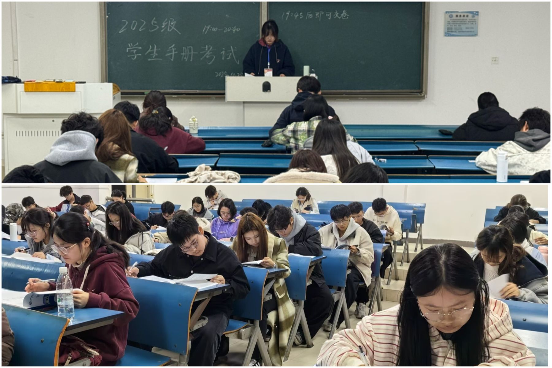 为进一步强化新生对校纪校规的学习理解和自觉遵守,增强新生的规矩意识和纪律观念。10月25日晚,动物科学学院于新知楼A栋组织开展2025级本科生新生《学生手册》考试,学院2025级350余名本科生新生参加考试。