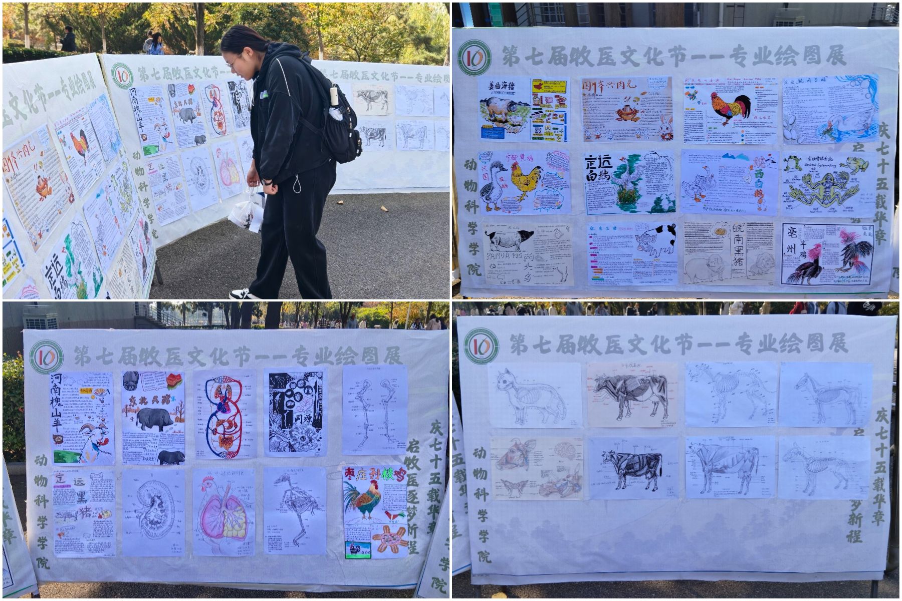 在专业绘图作品展示区,汇聚了动物形态学绘图大赛、地方特色畜禽种质资源主题展板大赛的30余件作品,志愿者现场讲解作品的创作理念与背后的专业知识,展现了学院学子扎实的专业素养与创新能力。