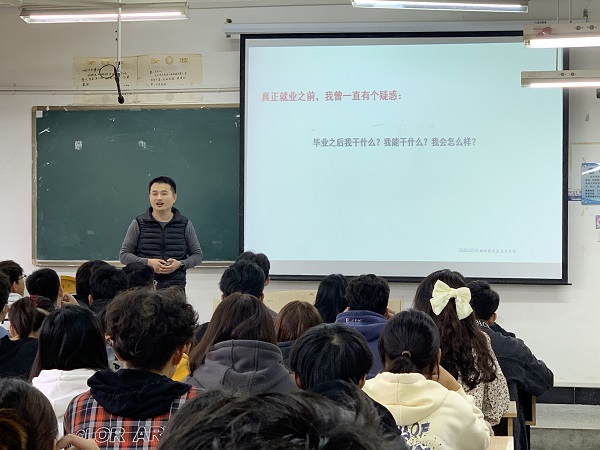 薛飞分享了自己在大学毕业后一步步奋斗的经历,告诉同学们只要肯吃苦、肯实干,就能在自己的领域开拓出一片天地。同时分享了动物科学、动物医学、动植物检疫毕业的同学目前发展的现状,嘱咐同学们努力学习、坚定信念。薛飞还鼓励同学们发掘兴趣爱好,积极参加活动,锻炼社交能力,开拓人脉,为以后的发展打下基础。