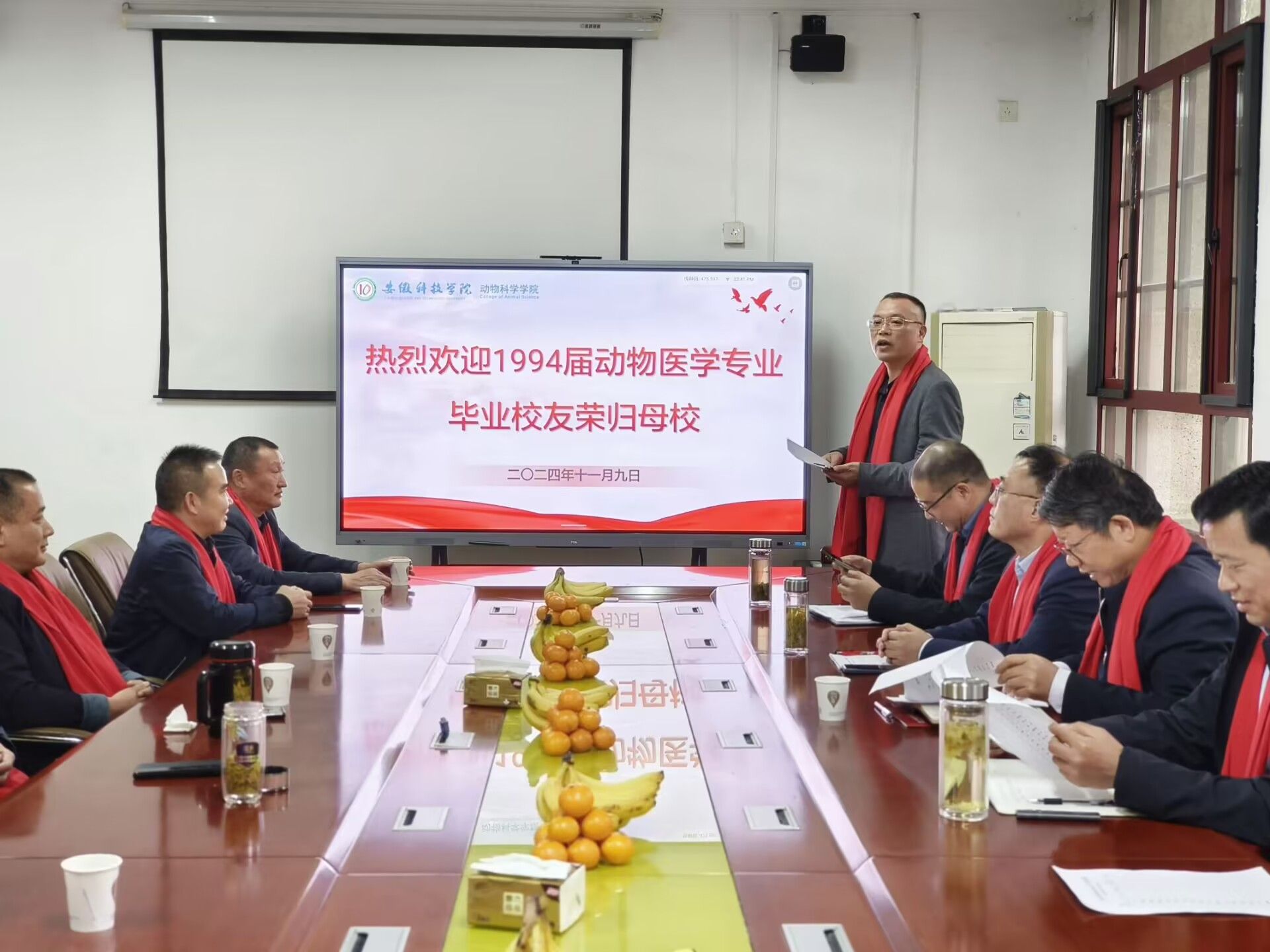 11月9日下午,动物医学专业1994届毕业校友荣归母校座谈会在西办公楼104室召开,校党委副书记、院长李升和,原校党委书记蒋德勤,招生与就业工作处副处长(主持工作)何晓冬,机械工程学院党委书记、时任班主任姚勇,动物科学学院党委书记程斌,动物科学学院党委副书记、副院长(主持工作)周金星和教师代表等出席会议,座谈会由校友代表张萍主持。