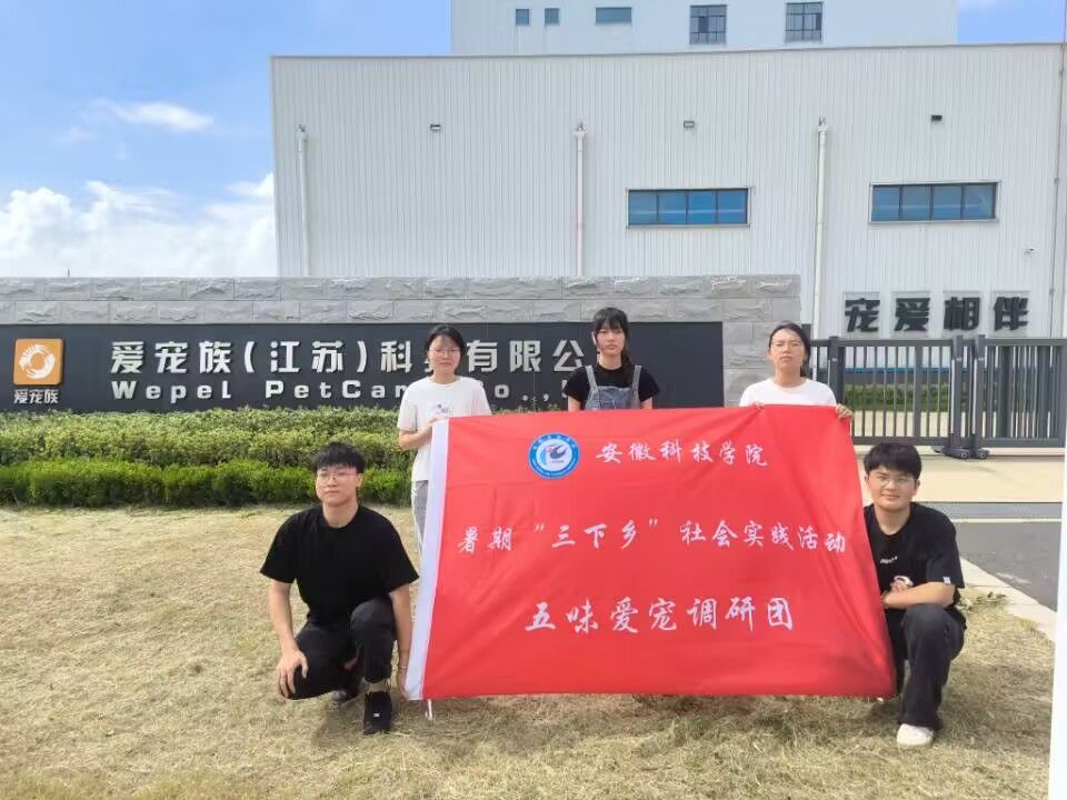 7月28日,安徽科技学院动物科学学院“五味爱宠调研团”到江苏镇江爱宠族科技有限公司,通过线上问卷调查、宠物食品公司参观、企业专家对话的方式,开展以“探宠食现状,寻健康密码”为主题的暑期“三下乡”社会实践活动,深入探索“药食同源”理念在宠物食品领域的创新应用。