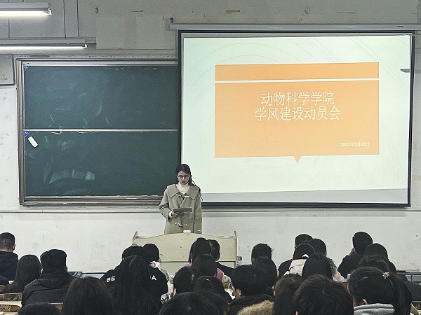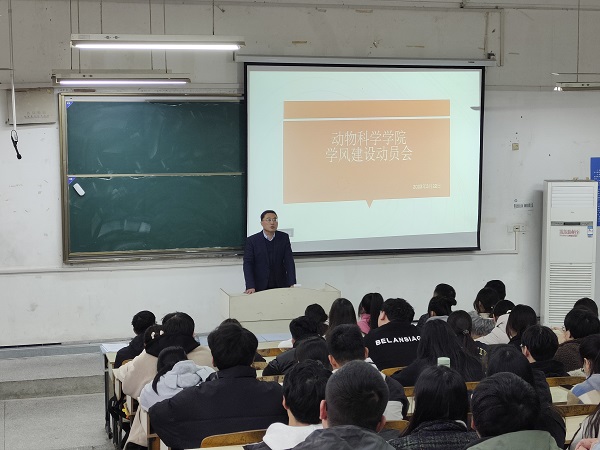 为完善和优化学院学生学习和生活环境,积极营造学术氛围浓厚、学习风气优良的育人环境,3月22日下午,动物科学学院在求知楼A座102召开学风建设动员会。党委书记姚勇,党委副书记、纪委书记汤帅,党委委员、副院长贺绍君,党政办公室主任、团委书记李焱及各辅导员出席会议,各班班长、团支书、学习委员、心理委员、资助委员参加会议。会议由汤帅主持。
