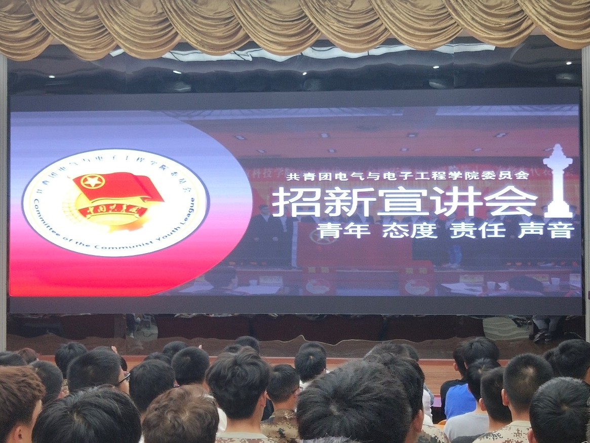 为提高学院新生个人综合素质,丰富新生课余生活,9月27日晚,电气与电子工程学院分团委于敏行楼A报告厅举办招新宣讲会,2020级全院新生参加了此次活动。