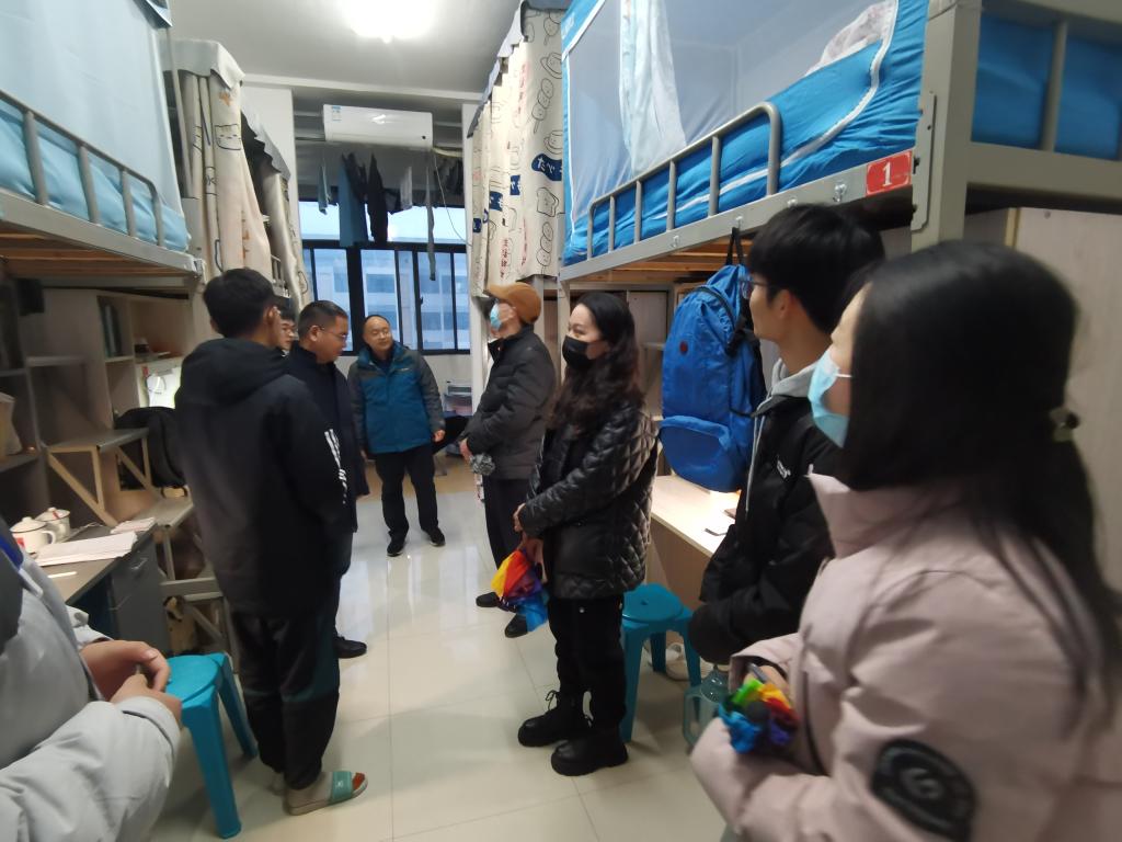 骆海邦一行人走进学生宿舍,向同学们传达新春的祝福。骆海邦、夏显明指出,当前正值冷暖更替季节,各位同学应当密切关注自身身体健康状况,做好寝室日常卫生工作;尽快恢复复习备考状态,顺利通过学期初的考试;尽早制定本学期学习计划,保质保量完成学业,在英语四六级考试中取得良好成绩;要积极拓展实践能力,在学院“双导制”引领下,发挥专业技能优势,通过学科竞赛锻炼,努力成为真正的应用型人才。