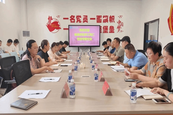 7月19日下午,蚌埠学院党委学工部部长、学生处处长赵思莉一行到安徽科技学院,交流学生工作经验,并就“双导制”展开深入讨论。安徽科技学院党委学工部部长、学生处处长黄立义,副处长陆双双,龙湖校区各学院分管学生工作党委副书记以及相关辅导员代表参加交流会,黄立义主持会议。