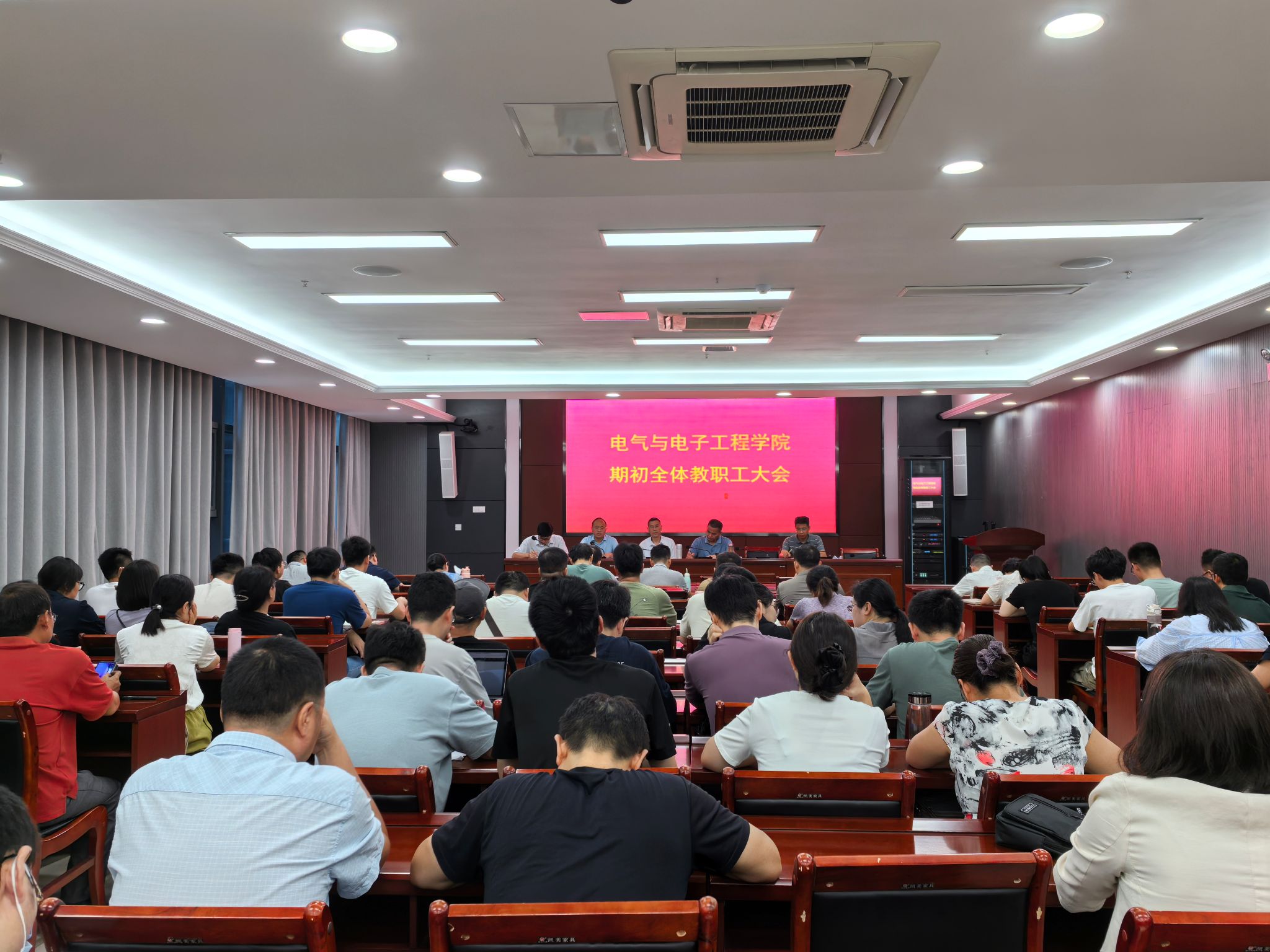 8月30日上午,电气与电子工程学院于西辅楼111会议室召开新学期全体教职工大会,学院党政领导及全体教职工参加了会议,会议由党委书记骆海邦主持。
