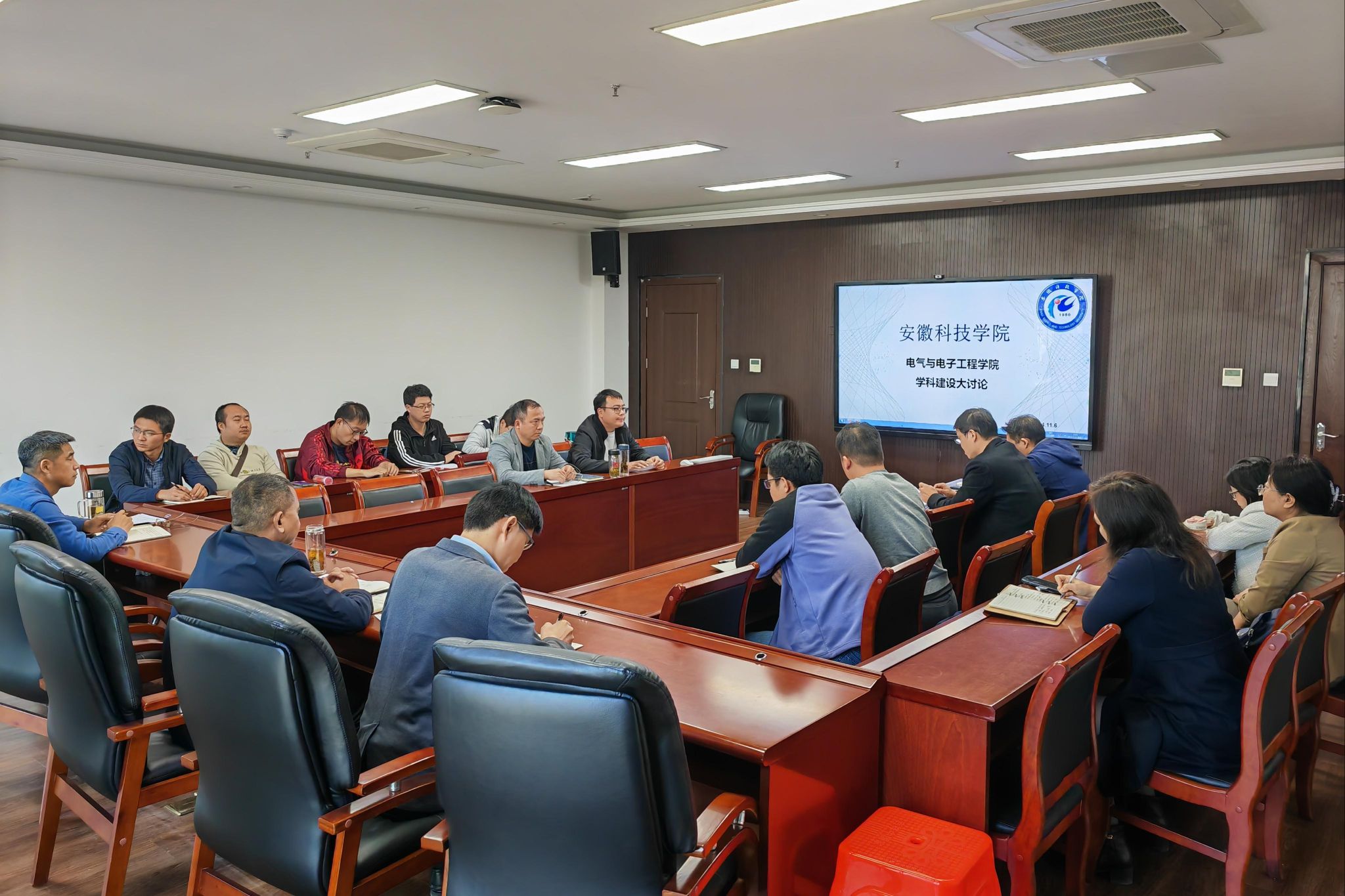 国海首先传达了安徽科技学院学科建设大讨论的通知文件精神,并根据文件内容围绕学科建设、研究生培养、师资队伍和科研团队平台建设等七个议题展开讨论。参会人员围绕核心问题展开了热烈讨论。