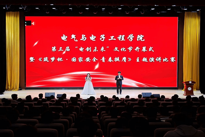 4月17日,电气与电子工程学院于东辅楼报告厅举行第三届“电创未来”文化节开幕式。学院党政领导,各系室负责人,专职辅导员及2023级全体学生参加。