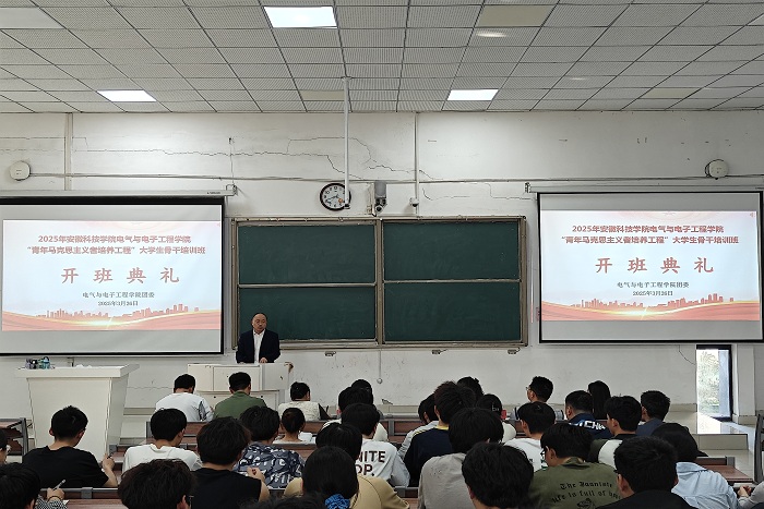 3月26日下午,电气与电子工程学院于致知楼C111举办2025年“青年马克思主义者培养工程”开班典礼。学院党委副书记尚磊出席,全体辅导员及青马工程培训班全体学员参加此次活动。